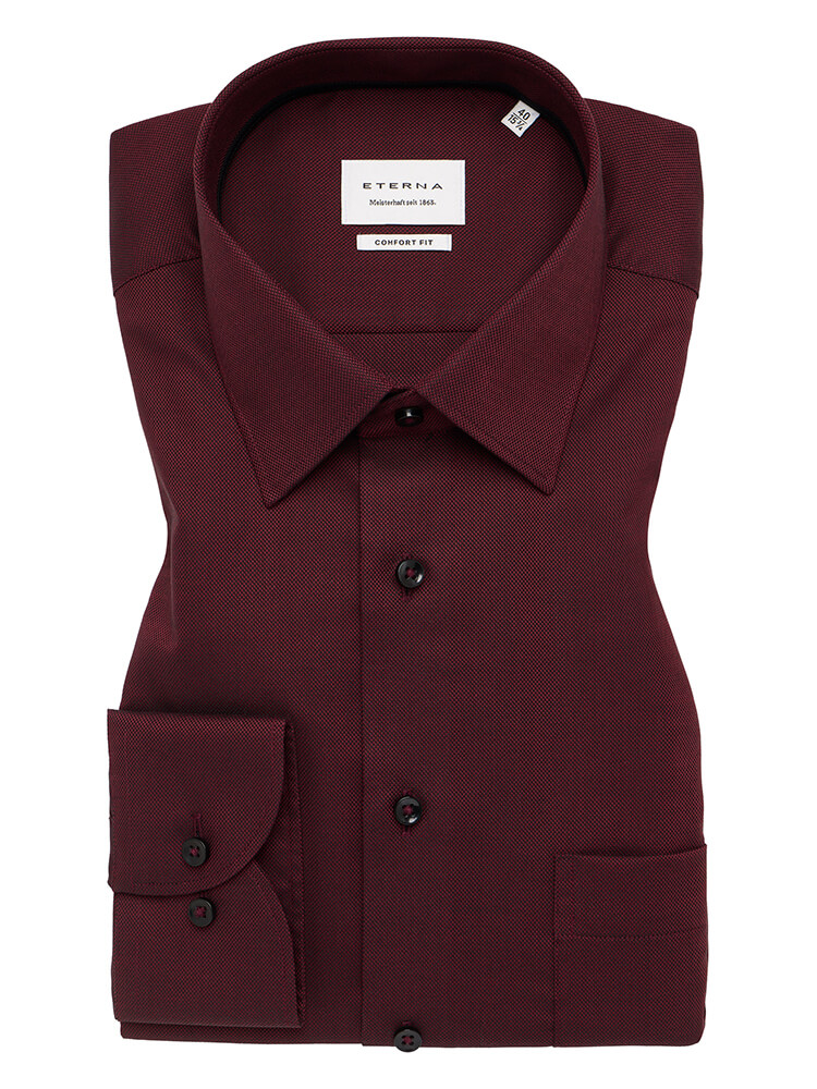 Das komfortable Businesshemd aus der ETERNA Comfort Fit Kollektion steht für den kultivierten und modebewussten Mann von heute. Ein klassischer Schnitt verbunden mit modischen Produktdetails verspricht einen hohen Komfort und macht dieses Hemd zu einem Meister der Kombination. Das unifarbene Herrenhemd in der Farbe dunkelrot darf in keiner Herrengarderobe fehlen und kann mit dem eleganten und zeitlosen Kent Kragen zu jedem Anlass sowie im Alltag getragen werden. Mit einer passenden Krawatte und einem großen Krawattenknoten kommt dieses ETERNA Comfort Fit Herrenhemd am besten zur Geltung.Herstellerinformation: