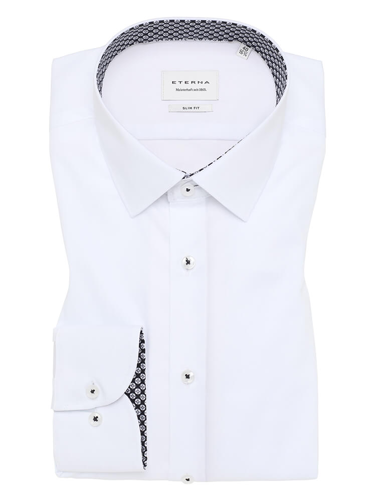 Das elegante Businesshemd aus der ETERNA Slim Fit Kollektion steht für den schlanken und modebewussten Mann von heute. Ein körperbetonter Schnitt verbunden mit modischen Produktdetails verspricht einen hohen Komfort und macht dieses Hemd zu einem Künstler der Kombination. Das unifarbene Herrenhemd in der Farbe weiß darf in keiner Herrengarderobe fehlen und kann mit dem eleganten und klassischen Kent Kragen zu jedem Anlass sowie im Alltag getragen werden. Mit einer schmalen Krawatte und einem kleinen Krawattenknoten kommt dieses ETERNA Slim Fit Herrenhemd am besten zur Geltung.Herstellerinformation: