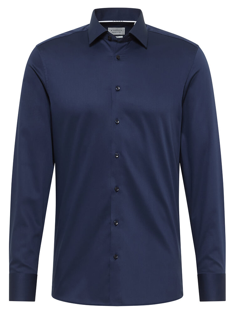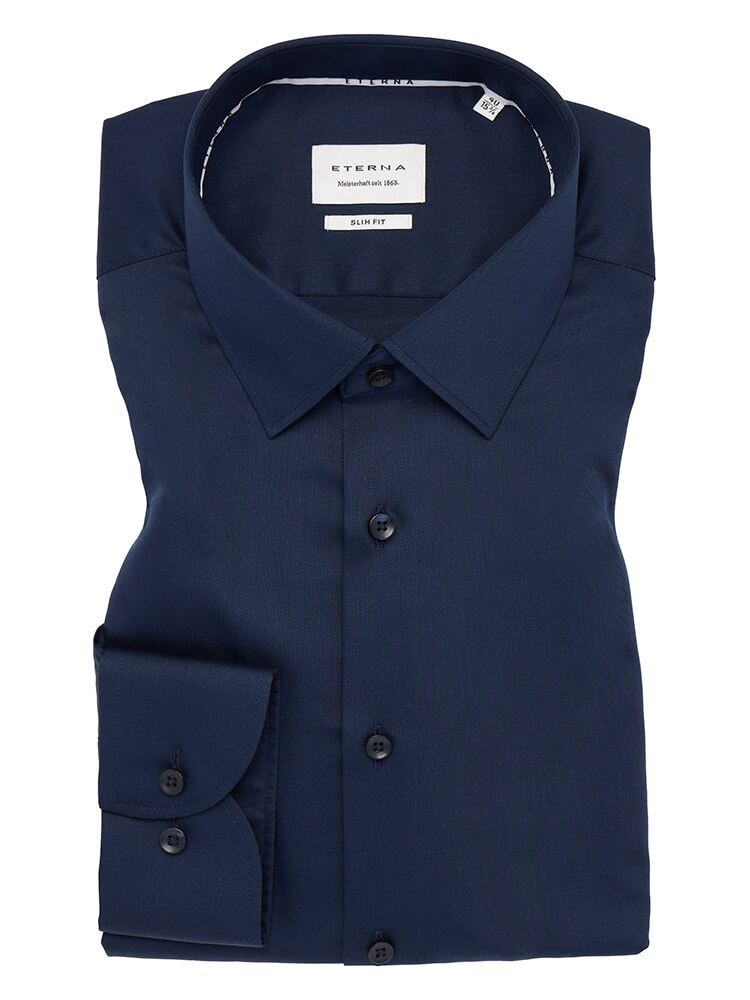 Das elegante Businesshemd aus der ETERNA Slim Fit Kollektion steht für den schlanken und modebewussten Mann von heute. Ein körperbetonter Schnitt verbunden mit modischen Produktdetails verspricht einen hohen Komfort und macht dieses Hemd zu einem Künstler der Kombination. Das unifarbene Herrenhemd in der Farbe dunkelblau darf in keiner Herrengarderobe fehlen und kann mit dem eleganten und klassischen Kent Kragen zu jedem Anlass sowie im Alltag getragen werden. Mit einer schmalen Krawatte und einem kleinen Krawattenknoten kommt dieses ETERNA Slim Fit Herrenhemd am besten zur Geltung.Herstellerinformation: