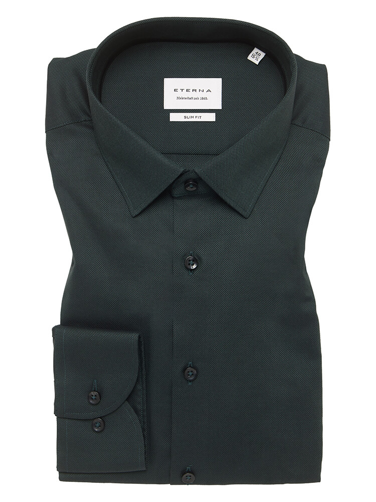 Das elegante Businesshemd aus der ETERNA Slim Fit Kollektion steht für den schlanken und modebewussten Mann von heute. Ein körperbetonter Schnitt verbunden mit modischen Produktdetails verspricht einen hohen Komfort und macht dieses Hemd zu einem Künstler der Kombination. Das unifarbene Herrenhemd in der Farbe grün darf in keiner Herrengarderobe fehlen und kann mit dem eleganten und klassischen Kent Kragen zu jedem Anlass sowie im Alltag getragen werden. Mit einer schmalen Krawatte und einem kleinen Krawattenknoten kommt dieses ETERNA Slim Fit Herrenhemd am besten zur Geltung.Herstellerinformation: