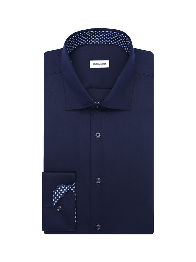 Das elegante Businesshemd aus der SEIDENSTICKER SLIM Kollektion steht für den schlanken und modebewussten Mann von heute. Ein körperbetonter Schnitt verbunden mit modischen Produktdetails verspricht einen hohen Komfort und macht dieses Hemd zu einem Künstler der Kombination. Das unifarbene Herrenhemd in der Farbe dunkelblau darf in keiner Herrengarderobe fehlen und kann mit dem eleganten und klassischen New Kent Kragen zu jedem Anlass sowie im Alltag getragen werden. Mit einer schmalen Krawatte und einem kleinen Krawattenknoten kommt dieses SEIDENSTICKER SLIM Herrenhemd am besten zur Geltung.