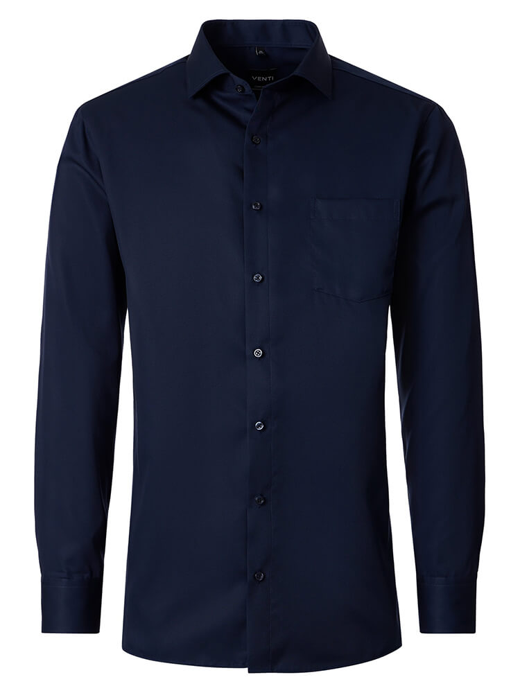 Das moderne Businesshemd aus der VENTI Modern Fit Kollektion steht für den selbstbewussten und modischen Mann von heute. Ein zeitgemäßer Schnitt verbunden mit erstklassigen Produktdetails verspricht einen hohen Komfort und macht dieses Hemd zu einem Meister des Arrangements. Das unifarbene Herrenhemd in der Farbe marine darf in keiner Herrengarderobe fehlen und kann mit dem vornehmen und klassischen Kent Kragen zu jedem Anlass sowie im Alltag getragen werden. Mit einer passenden Krawatte und einem großen Krawattenknoten kommt dieses VENTI Modern Fit Herrenhemd am besten zur Geltung.